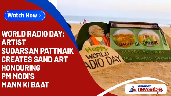 Sand artist Sudarsan Pattnaik on Monday (February 13) created a remarkable sand art honouring Prime Minister Narendra Modi's Mann ki Baat and shared the video on Twitter. Pattnaik made a sculpture at Puri beach, Odisha to celebrate World Radio Day.