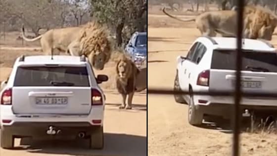 Viral video of lion climbing on top of the car at a safari park is a must watch