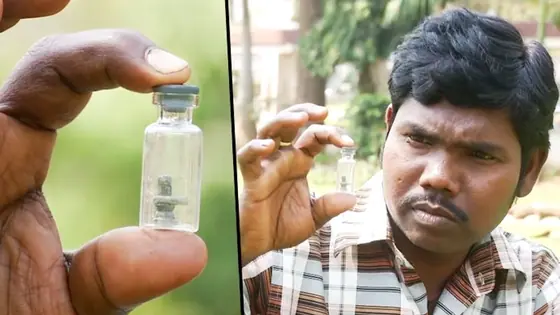 Bhubaneswar (Odisha): Renowned miniature artist L Eswar Rao crafted the smallest Shivling on a pencil nib. He also crafted 0.5 inches Shivling made of soft stone inside a small bottle. Rao hails from Jatni village 20 km away from Odisha's Bhubaneswar. Speaking to ANI, Rao said, "On the auspicious occasion of Mahashivratri, I crafted a smallest 0.5 inches stone made shivling inside a bottle and 0.5cm on a pencil nib and dedicated it to lord Shiva."