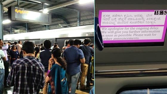 Bengaluru:The Bengaluru Metro Rail Corporation Limited (BMRCL) services came to a brief standstill due to a technical failure. The BMRCL tweeted that the technical failure occurred at 6.43 PM.