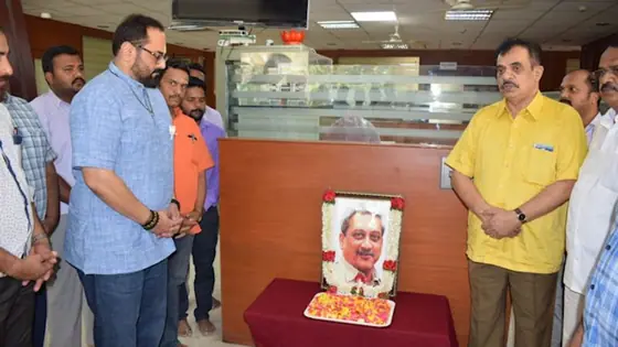 Bengaluru: BJP leaders on Monday paid tribute to Goa chief minister late Manohar Parrikar in the Bengaluru's party head office. Member of Parliament Rajeev Chandrashekar, state BJP spokesperson Pramod Hegde and party workers were seen paying tribute.