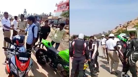 Bengaluru: Kolar Rural Traffic Police, on Sunday (June 9) stopped about 20 sports bikes who were racing against each other on the highway. According to reports, the bikers were travelling from Bengaluru to Kolar to spend the weekend together. Traffic police officials received information regarding the speeding bikes. Police officials checked for vehicle documents and slapped them with a fine.