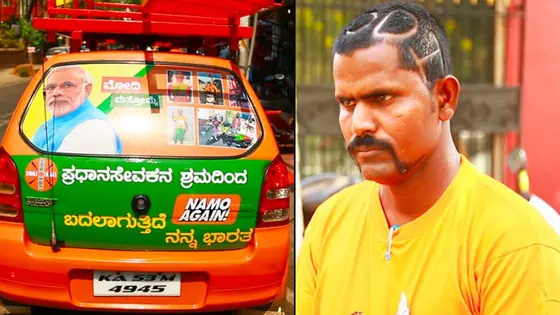 With an intention to campaign for PM Modi, his ardent fan Ashok has not only got a unique haircut, but has also customised his car, highlighting the achievements of Narendra Modi