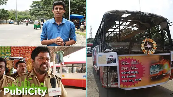 Bengaluru: Karnataka State Road Transport Corporation during an awareness campaign put up a burnt bus at Majestic Bus Station to highlight the sad state of buses during violent protests. The corporation said it lost a whopping Rs 20.13 crore in the last three years.