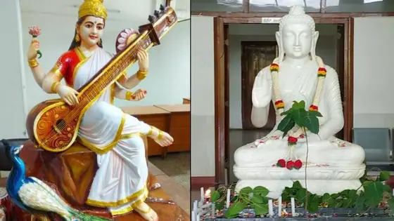 Bangalore University found itself in the middle of a controversy within its four walls over the idols of Gautam Buddha and Goddess Saraswati. The university has now decided to retain both idols