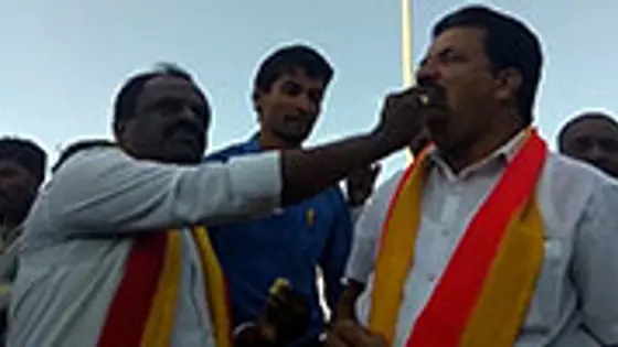 Pro-Karnataka organisations celebrate Supreme Court's decisions in Attibele by distributing sweets