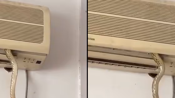 Snake comes out of an air conditioner to hunt its prey