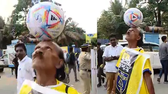 The Qatar World Cup 2022 is under two months away, and football enthusiasts worldwide are gearing up for the showpiece event. On Friday, one such fan was spotted outside Kochi's Jawaharlal Nehru Stadium ahead of the Indian Super League (ISL) 2022-23 clash between Kerala Blasters and East Bengal FC. However, what stunned the crowd was the fan's unique balancing act.
