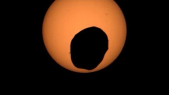 NASA's Perseverance Mars rover captured an eclipse featuring Phobos, one of the Red Planet's two moons. The sped-up video shows the highest frame rate and most zoomed-in view of a Phobos solar eclipse ever taken from the Martian surface.