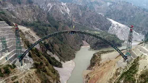 This achievement is a significant leap towards completing the 111 km long winding stretch from Katra to Banihal. The bridge is 1,315m long. The arch bridge will be 35 meters higher than the Eiffel Tower in Paris.