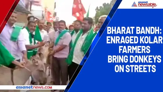 Bharat Bandh: Kolar farmers bring donkeys on streets, compare with PM in anger
