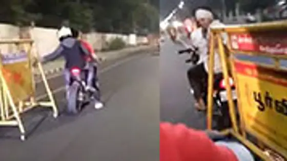 Video of young bikers fearlessly hauling a barricade off the road on New Year Eve goes viral
