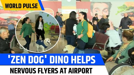 Offering a distraction to nervous flyers at Skopje's airport, Dino is the North Macedonian capital's 'Zen Dog'. The four-year-old golden retriever pays frequent visits to the airport where he creates 'a more relaxed atmosphere,' says Maja Bajalska Georgievska, head of communications for the company operating the site. WATCH.