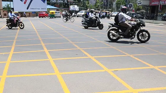 What do these 'zig-zag' lines at traffic junctions mean in Bengaluru?