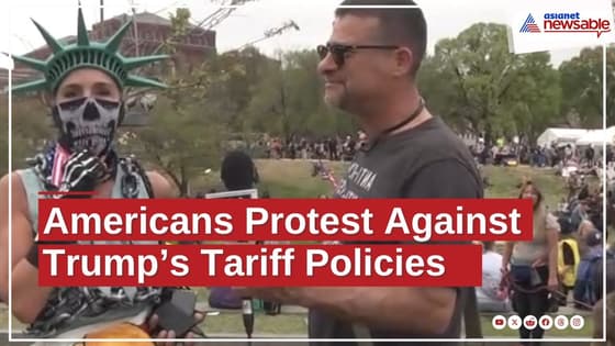 Large number of protesters hold demonstrations against the Trump administration's policies and executive orders. A protestor said, 'Our President Trump is a puppet of other interests and the tariffs are a tool to dismantle our country for other interests which are those which are manipulating.....'