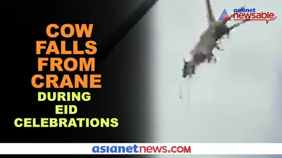 Bengaluru: In a horrific incident, a cow fell from a crane as it was being carried to be sacrificed during Eid celebrations. Tarek Fatah shared this video on Twitter and captioned it "Pakistanis 'celebrating' Eid by 'sacrificing' cows to please Allah".