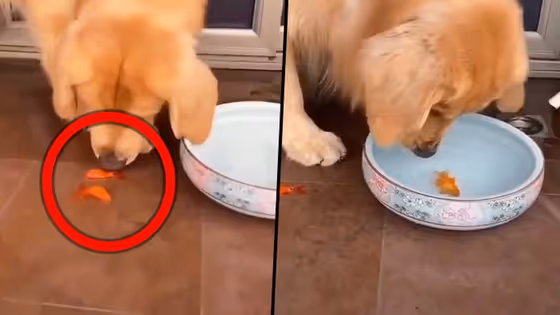 The video shared by former NBA player Rex Chapman on Twitter is a 25-second long clip, showing a golden retriever picking up a goldfish, lying on the floor to put it back in the fishbowl. The lovable creature repeats the process for the second fish too to save their lives.