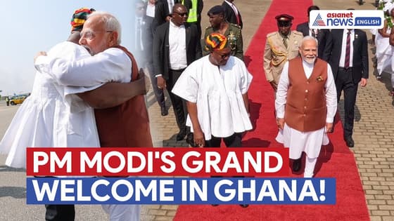 PM Modi’s arrival in Accra, Ghana received regal pomp, a 21‑gun salute, ceremonial guard‑of‑honour and Ghanaian President Mahama welcoming him personally. Cheered by the Indian diaspora chanting 'Modi‑Modi' and 'Hare Rama Hare Krishna', he embraced locals and held children during heartfelt greetings.