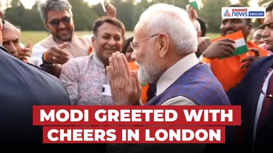 UK | PM Narendra Modi received a grand welcome from the Indian diaspora in London. Chants of 'Modi Ji, Modi Ji' echoed as emotional supporters waved flags and sought blessings. Modi expressed gratitude, saying he was 'deeply touched' by the love shown during his two-day UK visit.