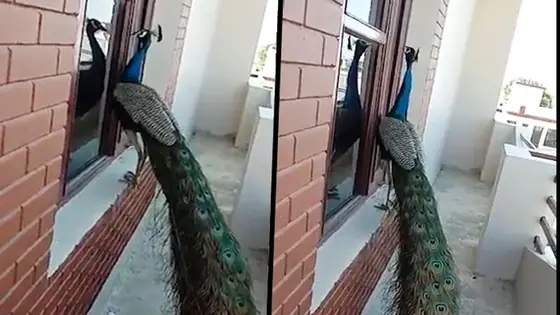 A video of a peacock knocking a window has emerged on social media and the video of the visitor has caught netizens by surprise