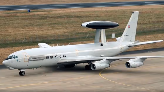 NATO's Boeing E-3A AWACS aircraft have a distinctive radar dome mounted on the fuselage which allows the crew to survey an area of more than 310,798 square kilometres. That's roughly the size of Poland.