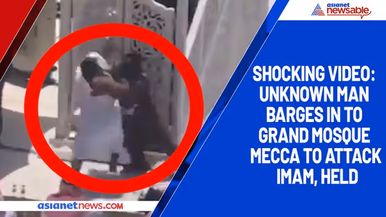 In the video, the attacker wearing white traditional 'Umrah' dress and with his head tonsured is seen holding a stick and trying to barge inside Minbar from nowhere.
