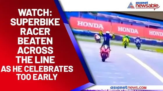 Superbike racer's premature celebration ahead of victory ends up finishing in third place: Watch the video