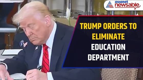 US President Donald Trump signs an executive order to begin eliminating the Federal Department of Education. Donald Trump says, 'I was very lucky. I signed another document that turned out to be very good for the country, and I said, let's use that same pen (to sign the executive order)...'