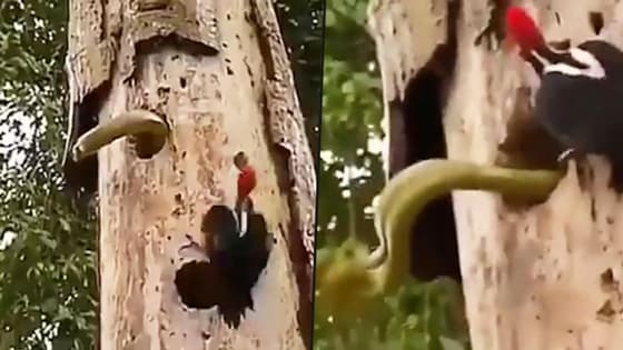 A mother's love can defeat anything. To guard her babies, a mother can go to any extent. A viral video on Twitter where a woodpecker is seen fighting a snake to save her babies explains the same.