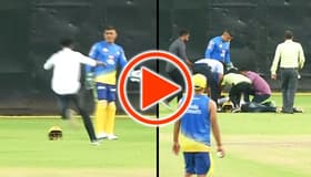 A fan broke all barriers and reached legendary cricketer MS Dhoni during a practice session of Chennai Super Kings in Chennai, and touched his feet