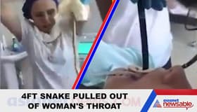 A shocking moment of a 4ft snake being removed from a woman's mouth has emerged on social media.