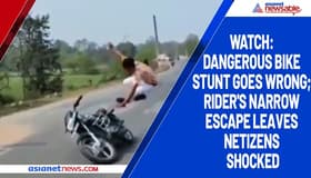 A video of a man performing a dangerous bike stunt and falling on the road miserably has gone viral.
