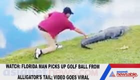 A man from Florida picks up a golf ball from an alligator's tail at the Coral Oaks Golf Course in Cape Coral and the video has gone viral on social media.