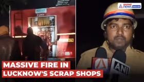 A blaze erupted at scrap shops near the Itaunja Bridge in Lucknow on Monday, prompting an immediate response from fire teams. Efforts to control and extinguish the flames are still underway. Authorities confirmed that no casualties have been reported yet, while the exact cause of the fire remains under investigation.