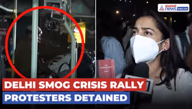 Tension gripped India Gate as Delhi Police detained protesters demanding stricter government action to tackle the city’s worsening air pollution. Demonstrators called for immediate policy reforms to ensure clean air for all. One protester shouted, 'We’re being detained for demanding clean air in our own city!'