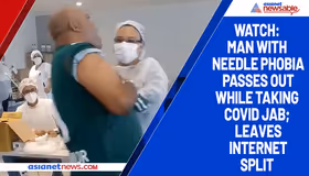 A video of a man with needle phobia passing out as he gets his first dose of Covid vaccine has gone viral.