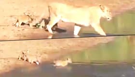 A viral video of a lioness taking her cubs for a leisurely walk across a narrow river has won the hearts of several netizens.