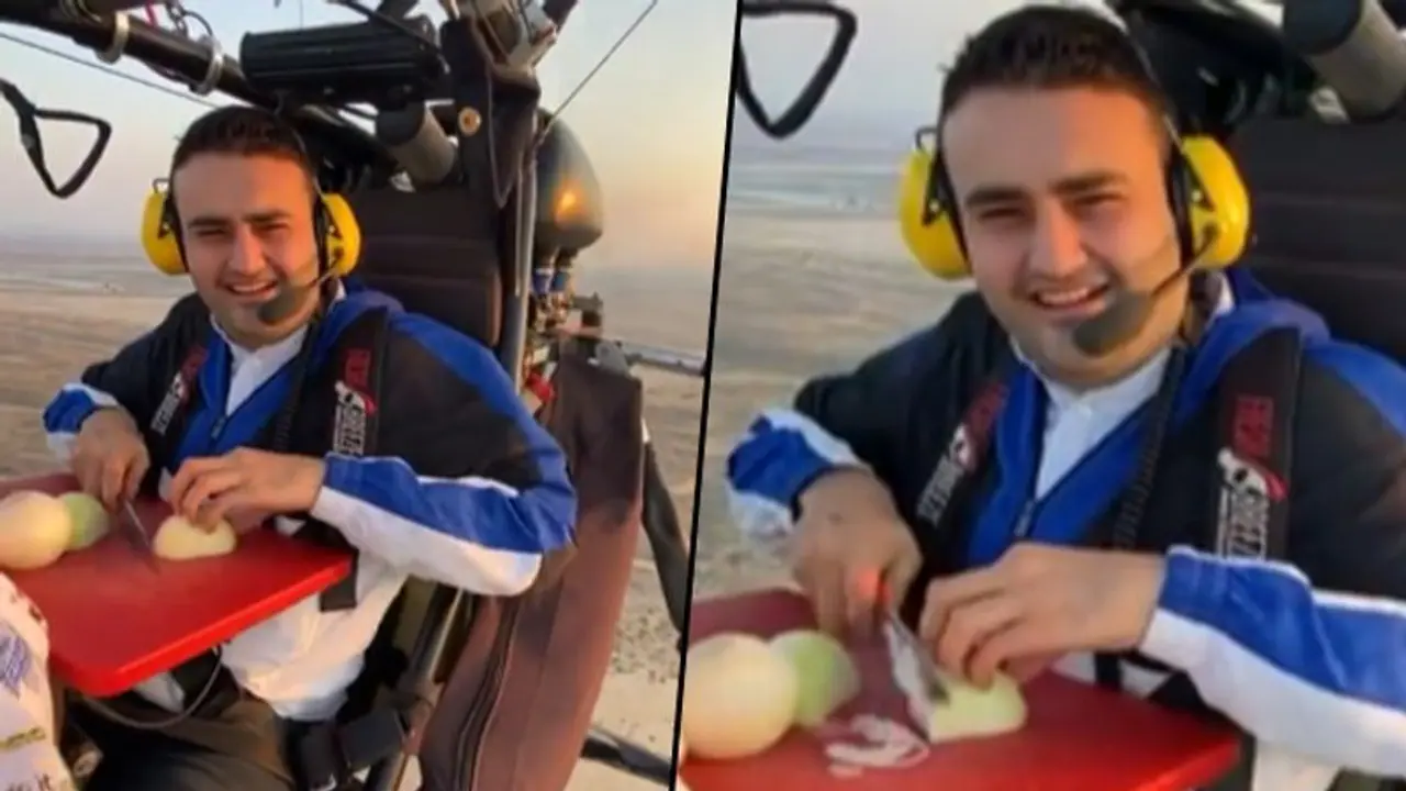 An Instagram video shows Turkish chef Burak Özdemir chopping onions while flying.