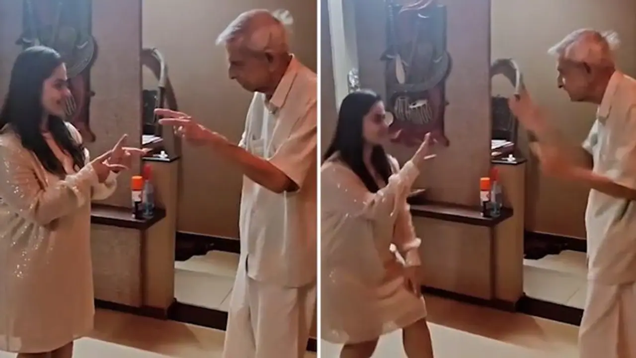 Divesha can be seen showing her grandfather how to do the steps, and he follows her adorably.