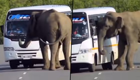 An elephant stopping a bus in the middle of the road and trying to enter the vehicle has emerged on social media. Shared by IPS officer Dipanshu Kabra, the video is an excellent example of how clueless the animal is.