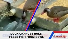 A “kind-hearted duck” picks up some grain and feeds it to a fish. A video of this has emerged on social media.