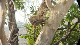 A video shared by Panna Tiger Reserve’s twitter handle shows a leopard making the kill of a monkey.
