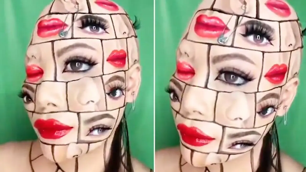 A video of a woman in trippy optical illusion makeup is making rounds on social media, and netizens are baffled watching it.