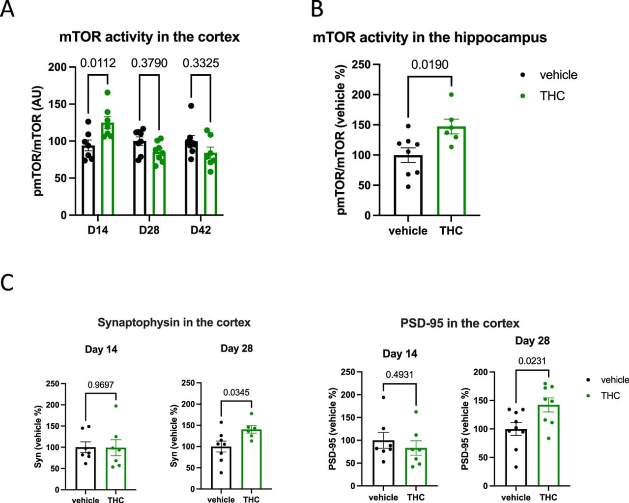 Earlier research by the team had already demonstrated that THC could improve cognitive abilities in older mice. This new study delves deeper, examining the effects of THC on mTOR signaling and the metabolome—the complete set of metabolic properties within a cell. The results revealed a dual effect of THC on these systems, with intriguing implications.
