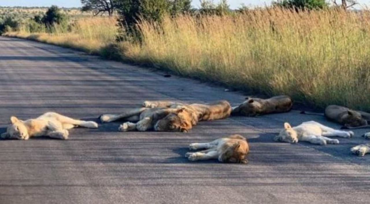 See these stunning pictures of lions sleeping on a road in South Africa as the country is under a lockdown due to the coronavirus (COVID-19)
