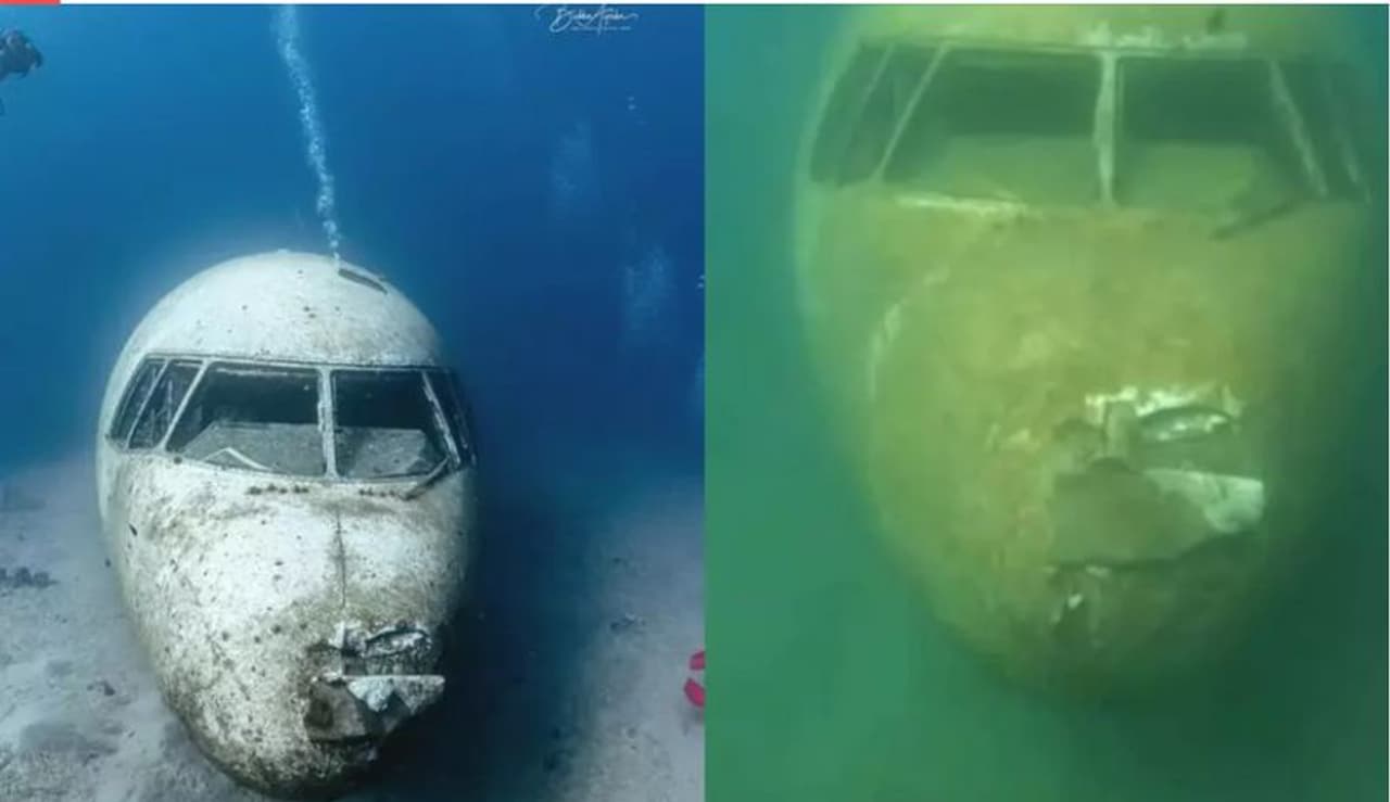 Asianet Newsable performed a Google reverse image search of the viral image of the aircraft wreckage and was directed to an article by CNN about the underwater wreckage of a Lockheed Martin L1011 Tristar aeroplane, which was reportedly sunk in Jordon's Gulf of Aqaba in 2019 "to create an artificial reef to encourage marine life", and encourage dive tourism.