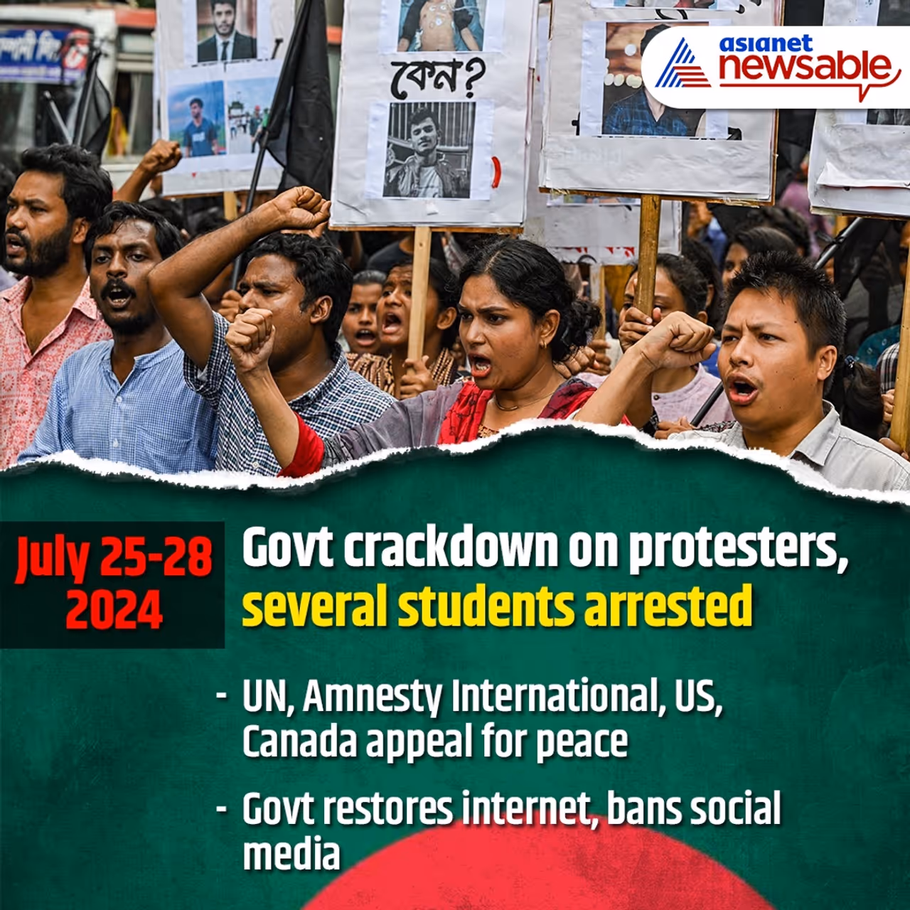 On July 23, the government released an order reforming the quota system, which was rejected by protesters. Four days later, security personnel conducted raids and arrested several protesters, mostly students.