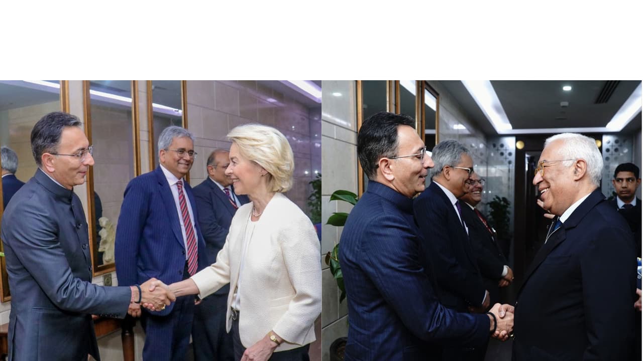 The President of the European Council, Antonio Costa and the President of the European Commission, Ursula von der Leyen, concluded their landmark three-day state visit to India, which led to 13 significant outcomes aimed at deepening the India-EU strategic partnership, including the India-EU Free Trade Agreement (FTA) and a defence pact under the Security and Defence Partnership.