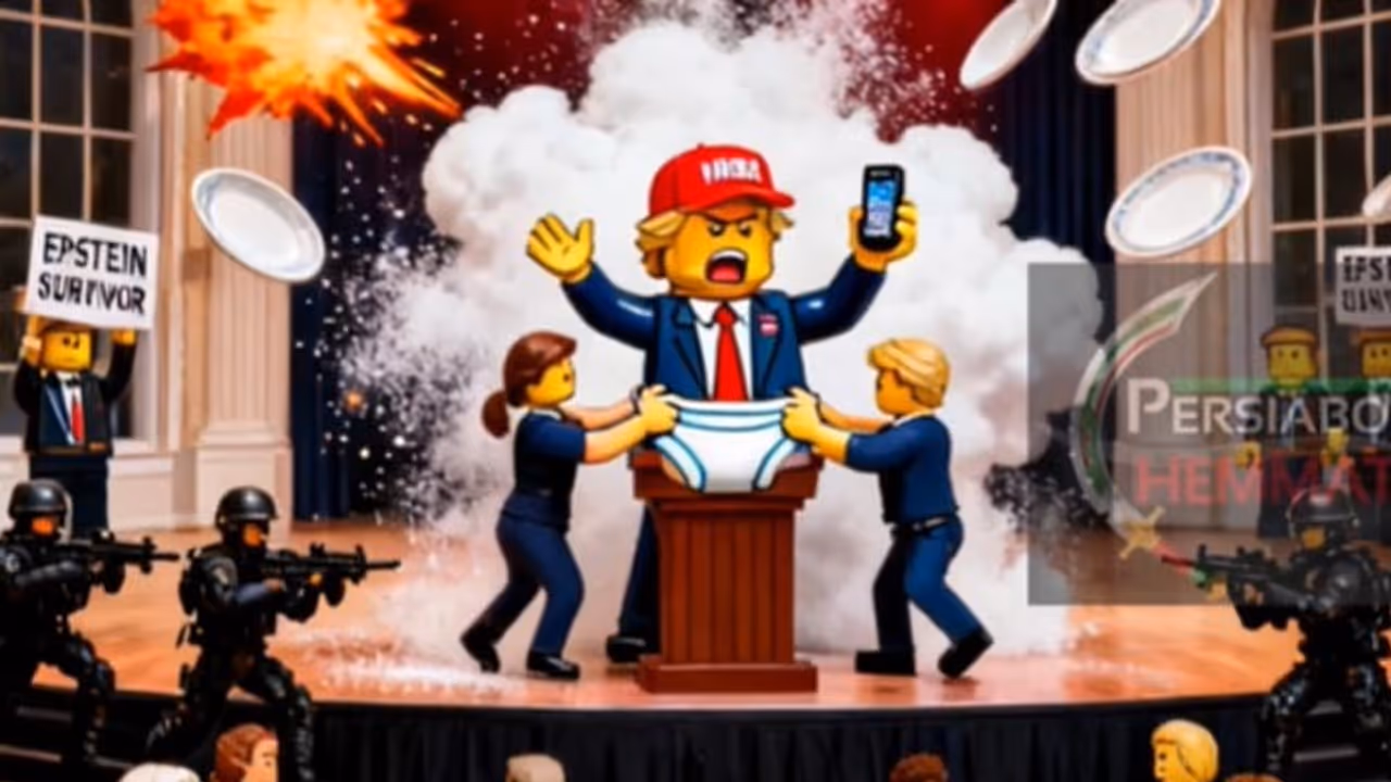 Iran-linked creators release a viral Lego-style diss track mocking Donald Trump after the White House dinner scare, questioning his leadership, narrative control, and the chaos during the evacuation.