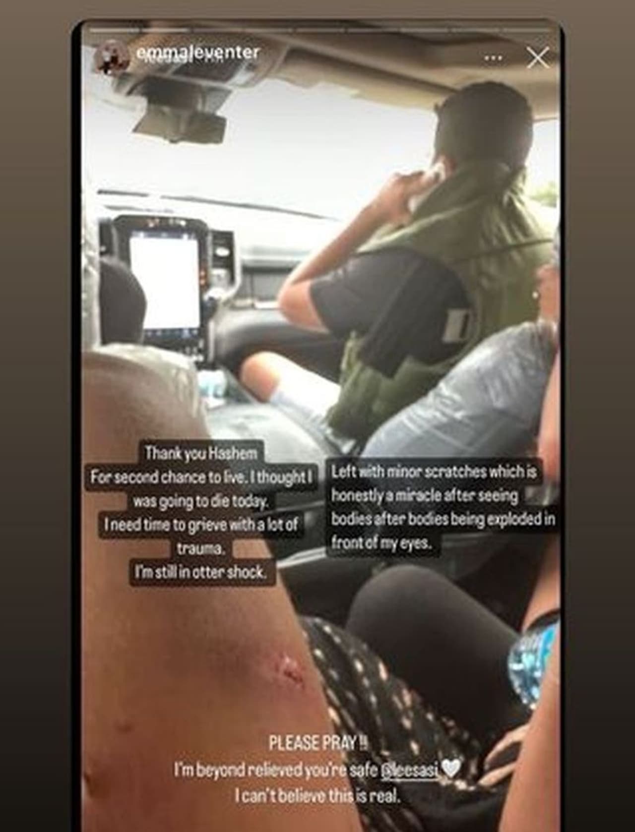 Sasi told her friend over Instagram that a thousand bullets were shot into the bomb shelter while the group took cover. 'The Arabs attacked the party and started shooting and throwing grenades into the bomb shelter that didn’t have any doors,' she said, adding '15 grenades and 1000 bullets being shot for 7 hours straight'.